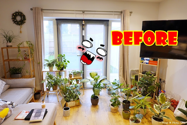 我為什麼需要一個櫃子放植物呢,因為我的那堆龜背芋跟鏡面草整個冬天瘋狂繁殖,我又不小心在園藝中心(這個過幾天講)買了三盆很想要的新植物,所以之前買的兩個植物架已經又不夠用了,整個客廳跟植物園一樣很不像話,只好再想辦法重新整理一下。