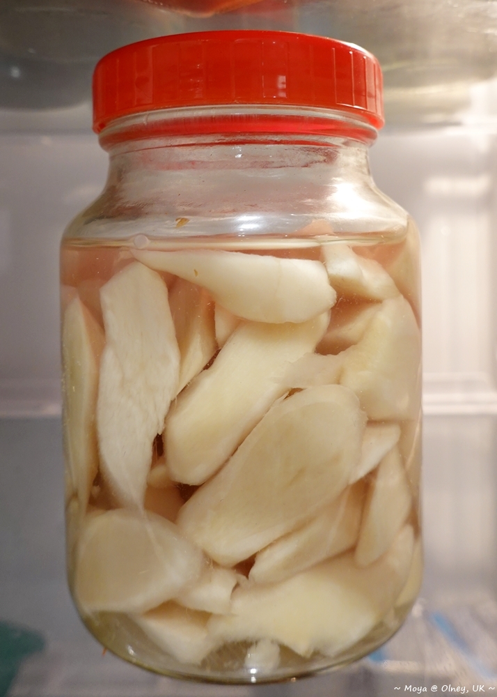 灑上會跳舞的柴魚片、淋上自製的美乃滋+韓國BBQ烤肉醬、配上一包已經過期3個月的韓式泡菜 (有密封包裝還好吧)、別人的媽媽扛來給我的醃嫩薑,外脆內軟好好吃啊~~~