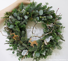 下面我會墊上雪松或是其他柏葉、上面還會蓋線條很美的各種尤加利葉